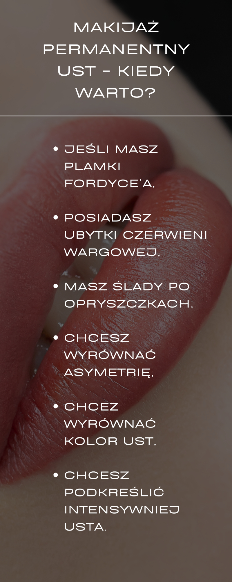 Makijaż permanentny ust to zabieg, który w ostatnich latach zyskał ogromną popularność – i wcale mnie to nie dziwi. Nie chodzi jednak o efekt mocnej, wyrazistej szminki, jak wiele osób mylnie sądzi. W praktyce po wygojeniu pozostaje około 30% pigmentu, co daje bardzo naturalny, subtelny rezultat. Dzięki temu możemy podkreślić kontur ust, wyrównać ich kształt i kolor, a twarz staje się wyrazistsza i bardziej harmonijna.